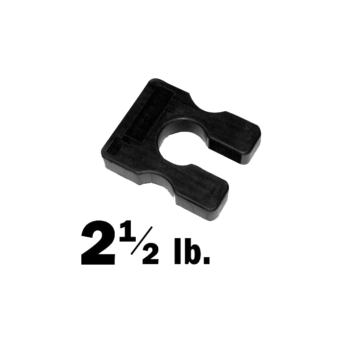 For use on any machine weight stack. Allows you to increase resistance in 2.5 or 5 lb. increments. No need to jump in 10, 15 or 20 lb. increments any longer. Features thick, protective virgin rubber molded over a solid steel core for a lifetime of trouble-free use. Will not slip, slide or fall off. Will not damage weight stack or machine.