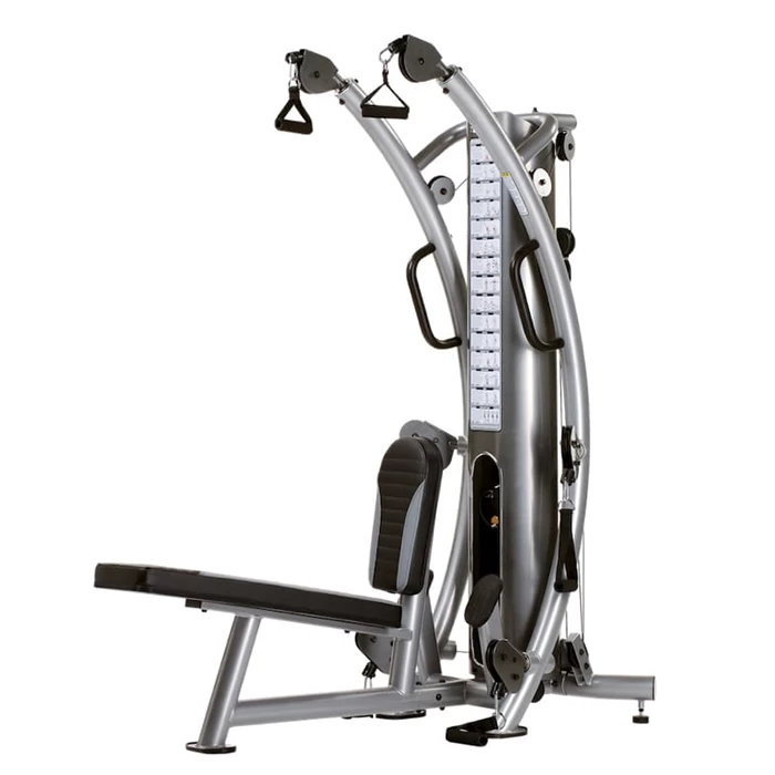 TuffStuff’s Light Commercial Six-Pak Functional Trainer (SPT-7) features free standing cable motion technology in an ultra compact package. Transitions between exercises are quick and easy with 3 convenient cable heights (low, mid, and high). The Six-Pak Functional Trainer (SPT-7) features “free-flow” handles and fixed long bench allows for various bench exercises.